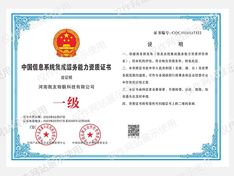 中國(guó)信息系統(tǒng)集成服務(wù)資質(zhì)證書(shū)